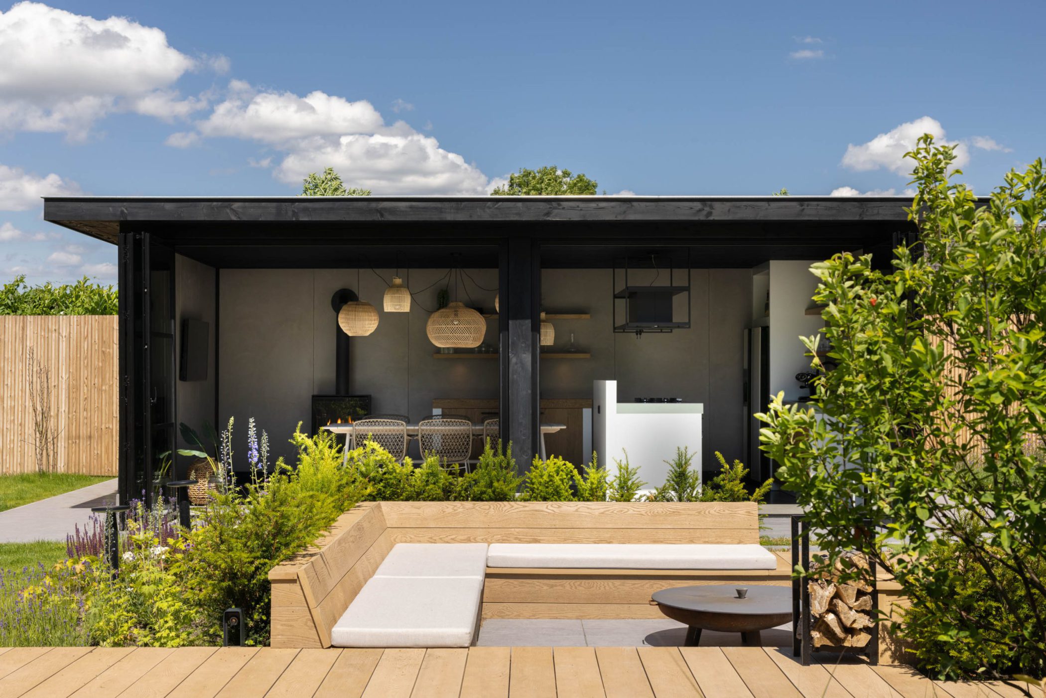 Ruimte genoeg om te loungen, koken én tot rust te komen. Zoals bij elk Bronkhorst buitenverblijf is ook dit ontwerp afgestemd op de levensstijl van de bewoners. Van indeling tot materiaalkeuze, alles sluit aan bij de tuin, de woning en hun wensen.