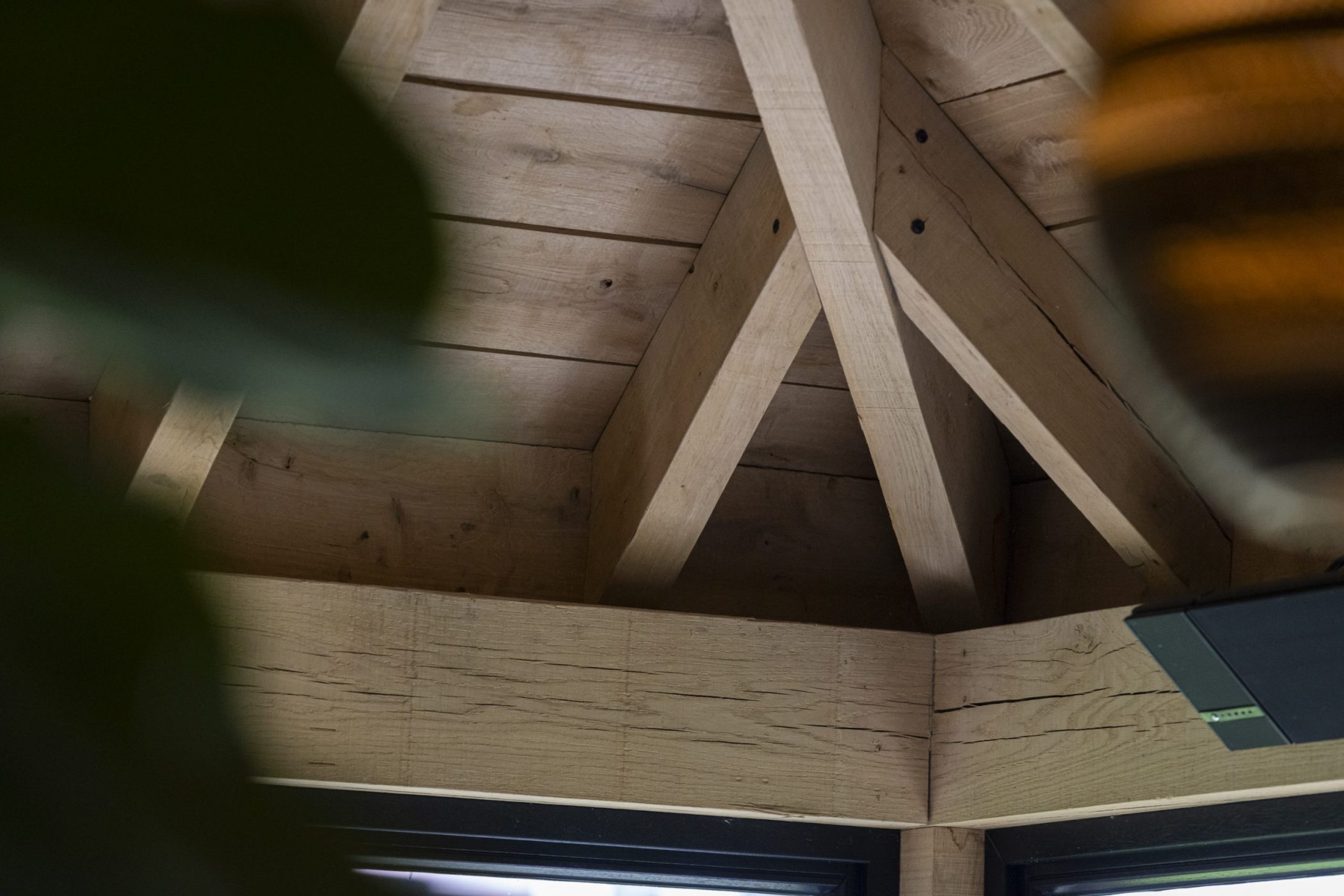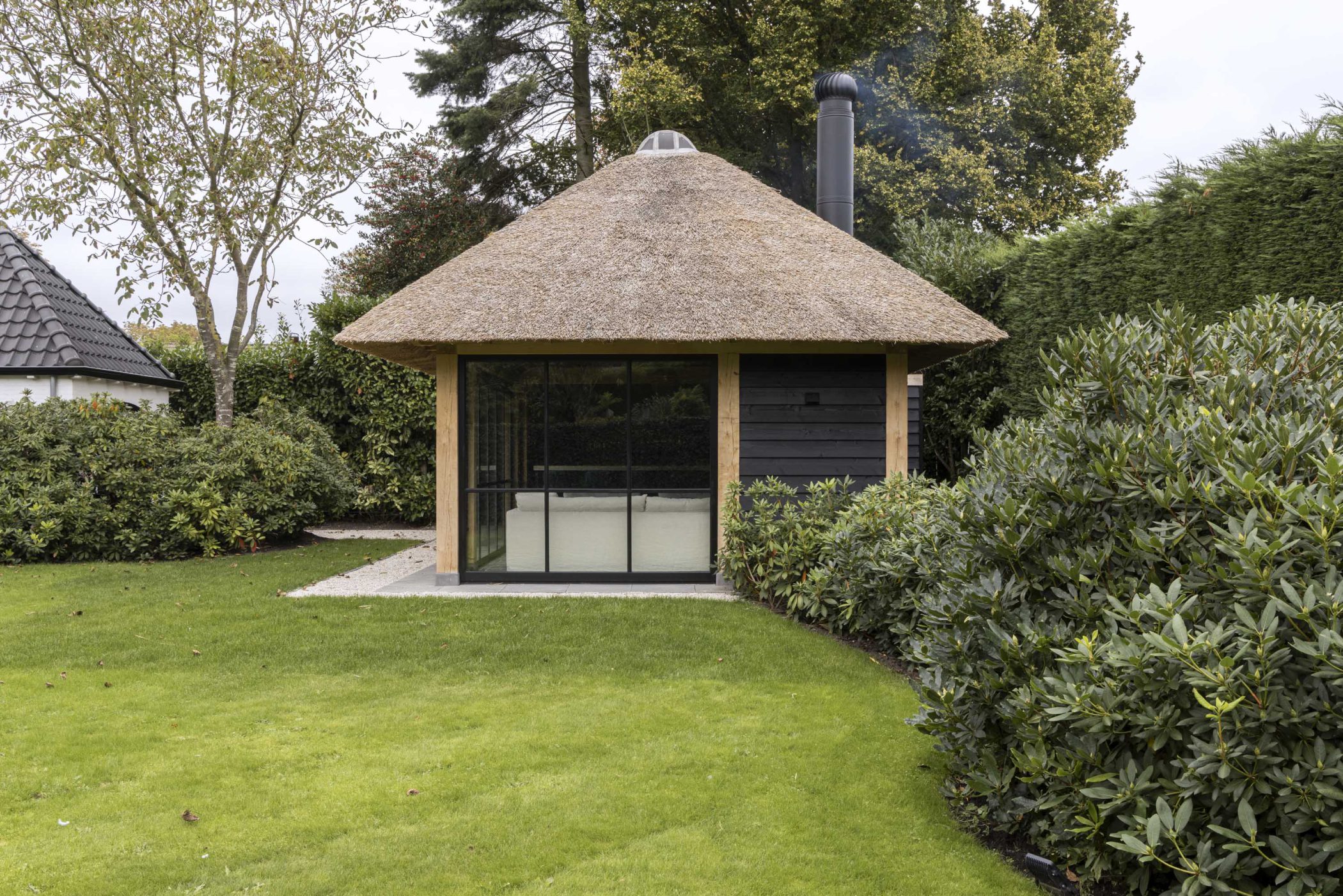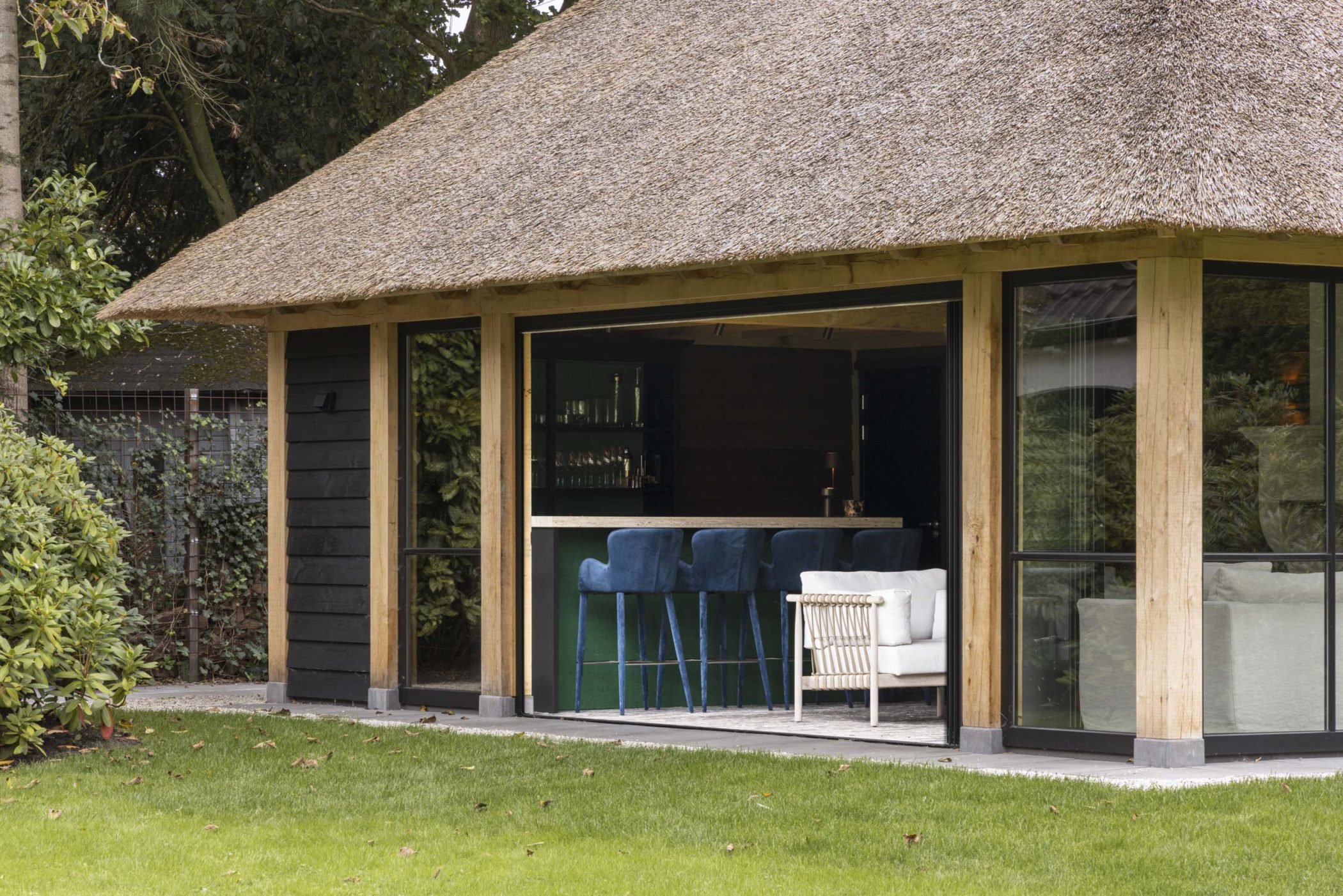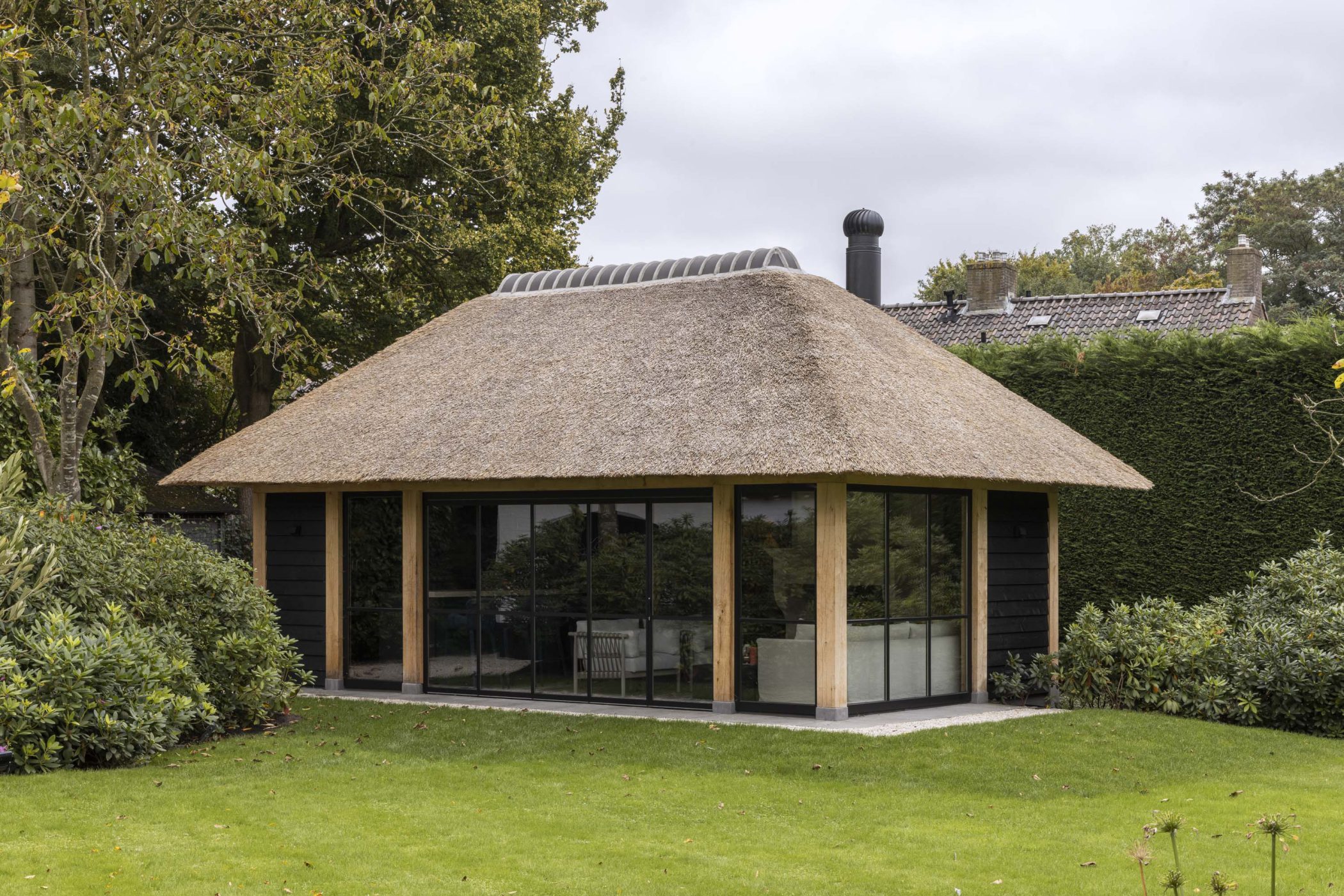 Een plek waar het buitenleven voelt als thuiskomen. Deze landelijke tuinkamer, vervaardigd uit prachtig eikenhout en afgewerkt met een stijlvol rieten dak, ademt warmte en karakter. Hier komt het knusse gevoel van binnen samen met het vrije uitzicht op uw tuin. Een plek om op elk moment van de dag te genieten: van lange zomeravonden tot gezellige winterdagen.