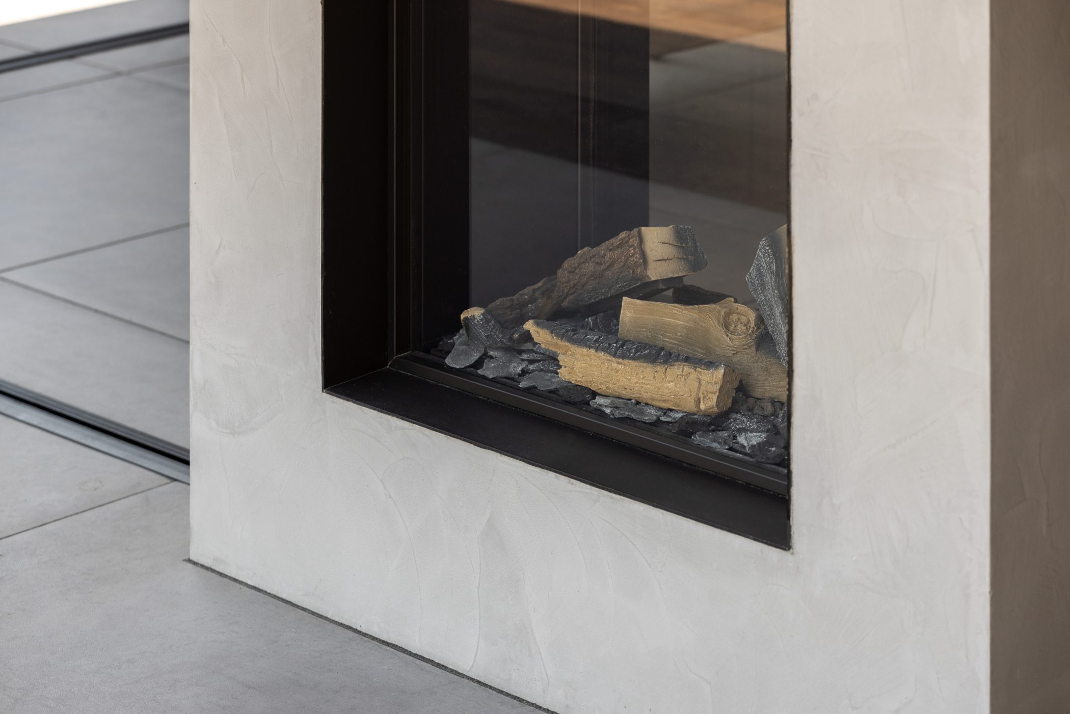 Naast het loungen is ook gedacht aan praktisch gebruik. De technische installaties en het toilet zijn discreet geïntegreerd, terwijl buiten een douche zorgt voor directe afkoeling na een duik. Onder de heaters en bij de haard ontstaat ’s avonds een fijne sfeer – perfect om de dag in alle rust af te sluiten.