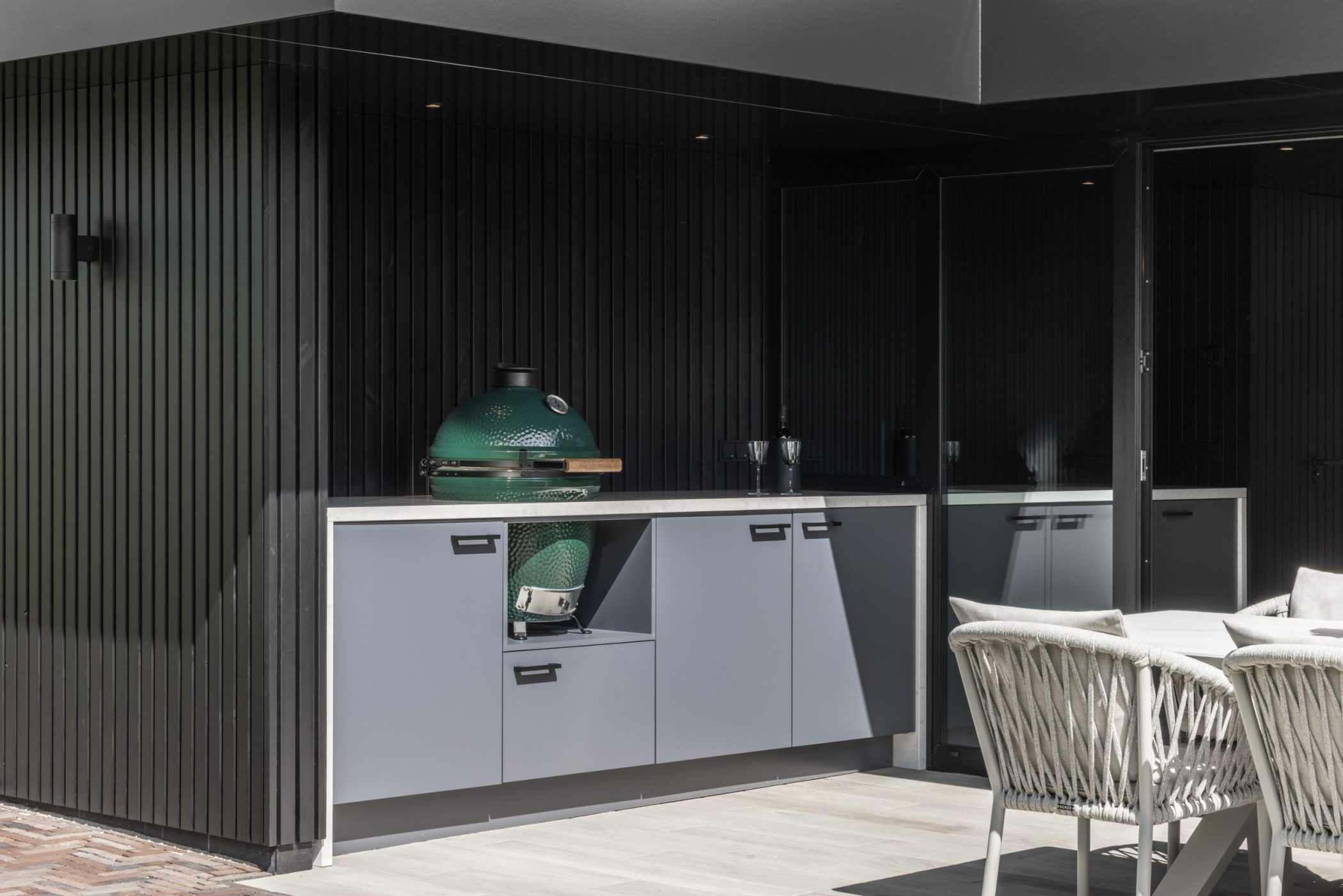 De volledig geïntegreerde buitenkeuken maakt van deze tuinkamer een ideale plek voor lange avonden met vrienden of familie. Of u nu een snelle lunch maakt of een uitgebreid diner bereidt, alles is binnen handbereik. En dankzij de luxe BBQ wordt elke maaltijd een belevenis.