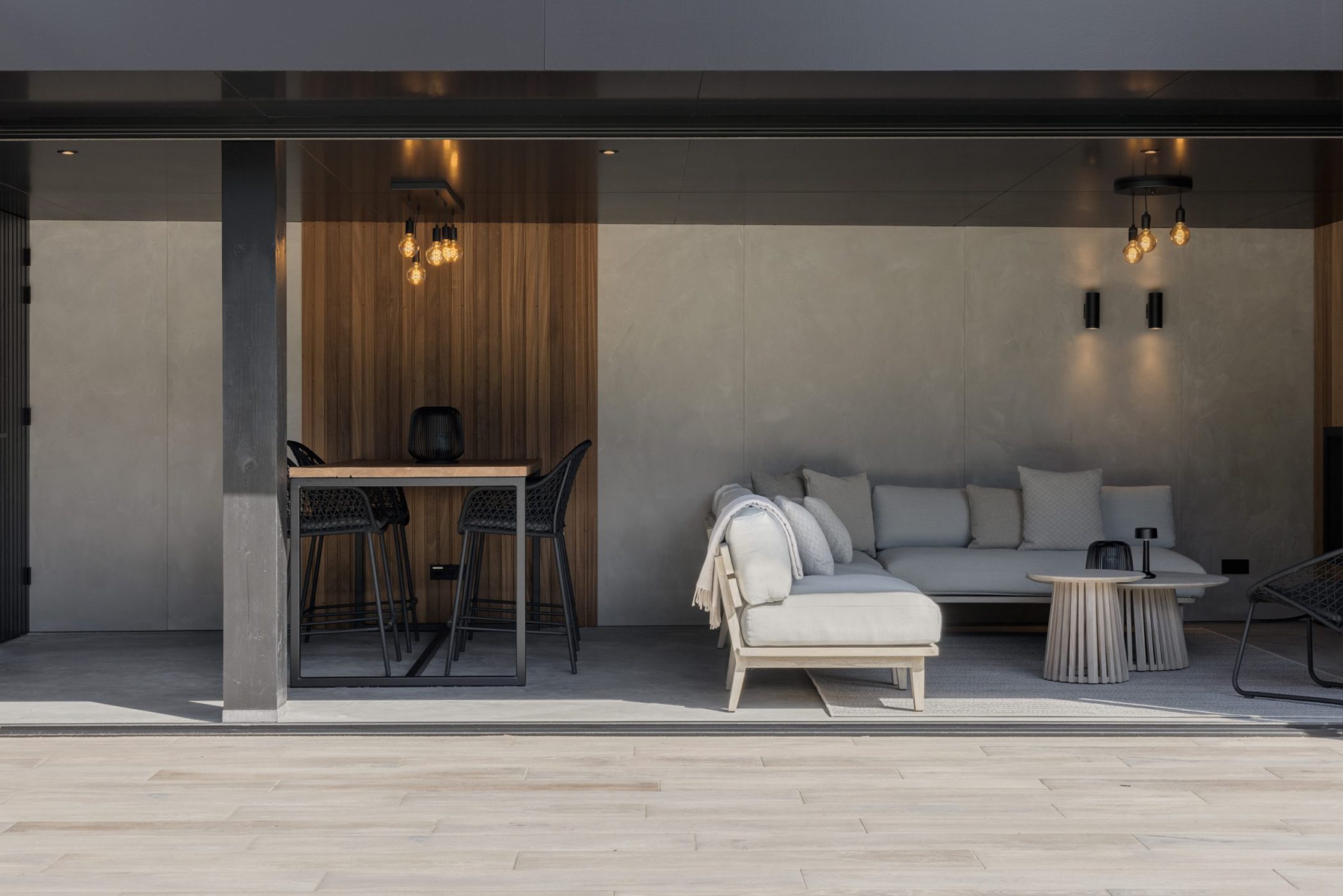 De opvouwbare glazen wanden zorgen voor maximale flexibiliteit: open bij mooi weer, dicht en behaaglijk bij wind of kou. Zo geniet u het hele jaar door van licht, lucht en uitzicht: met het comfort van binnen en de vrijheid van buiten.