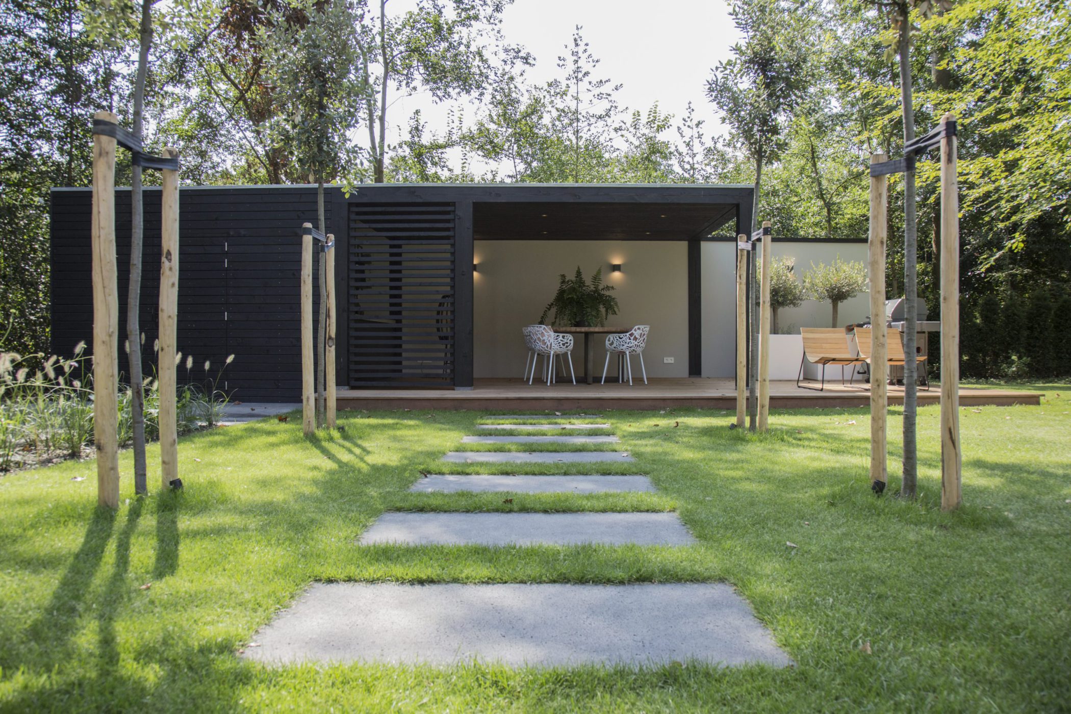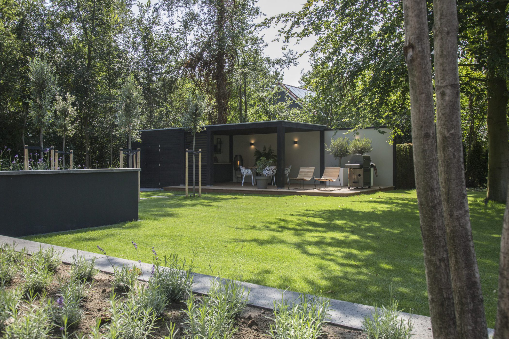 Moderne tuinkamer met buitenkeuken